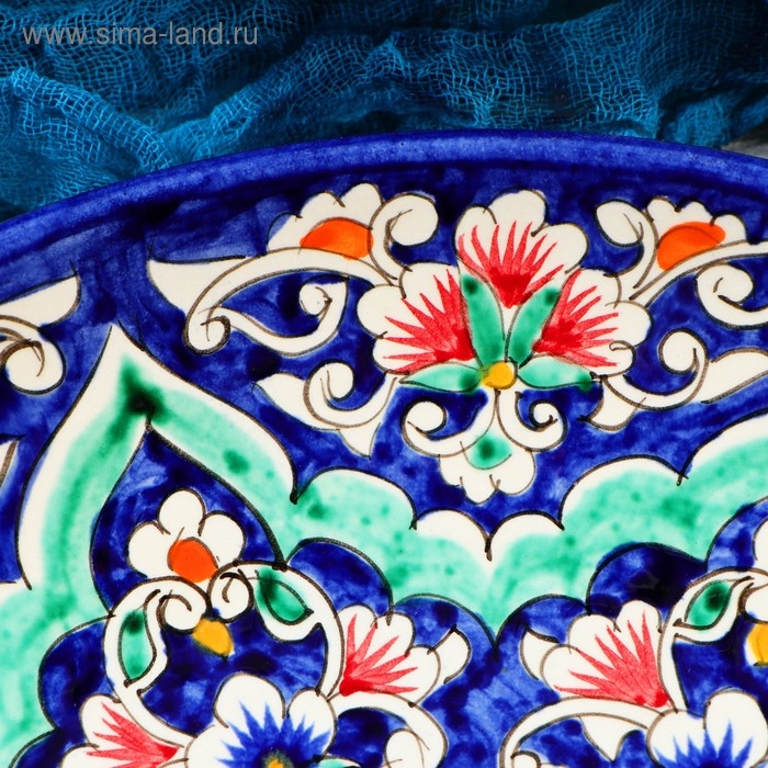 Ляган Риштанская Керамика "Цветы", 32 см, синий