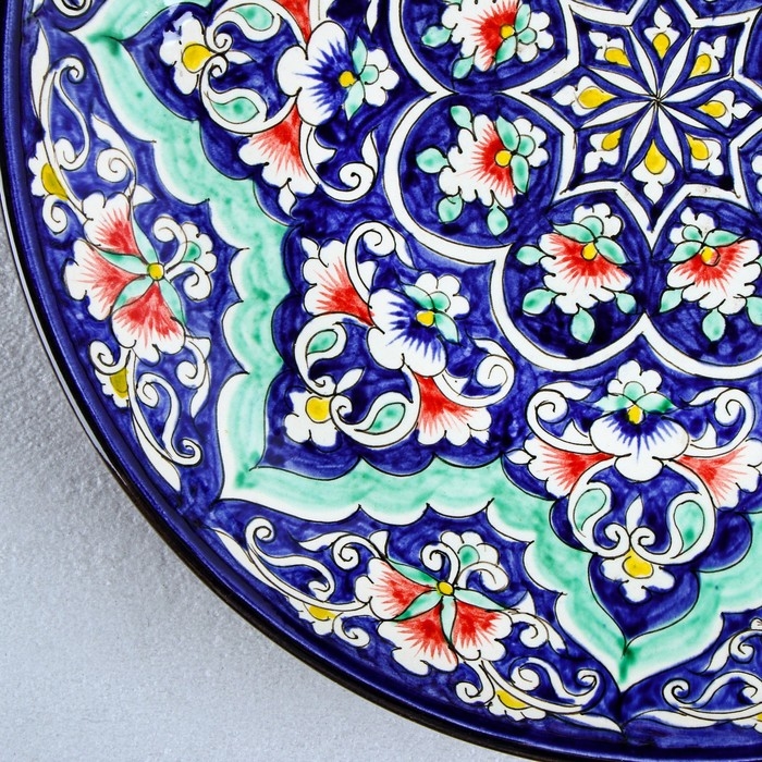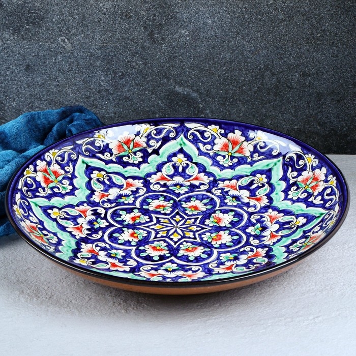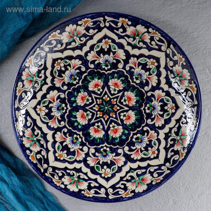 Ляган Риштанская Керамика "Цветы", 33 см, синий
