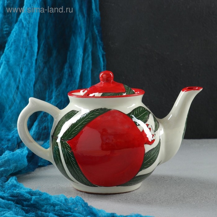Набор чайный Риштанская керамика "Гранат", 9 предметов (Чайник-0,8л,пиалы-0,5/0,3л)