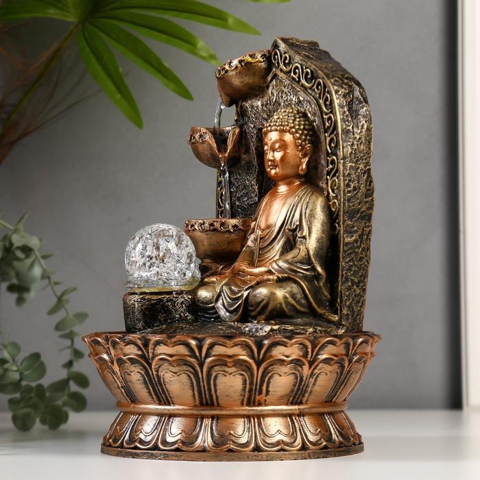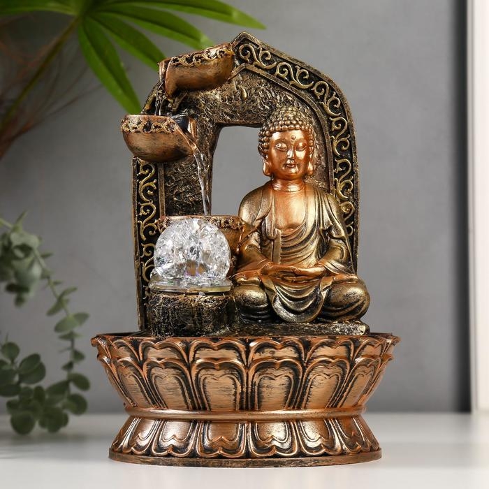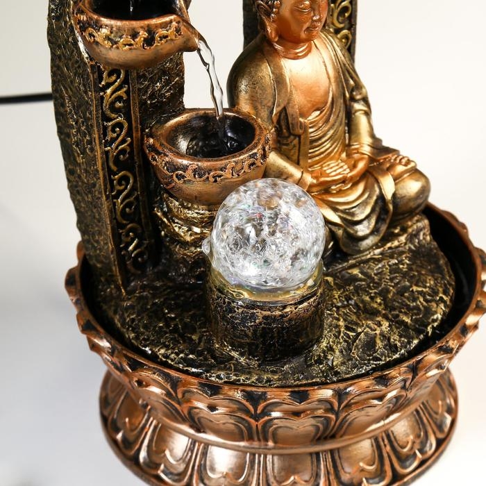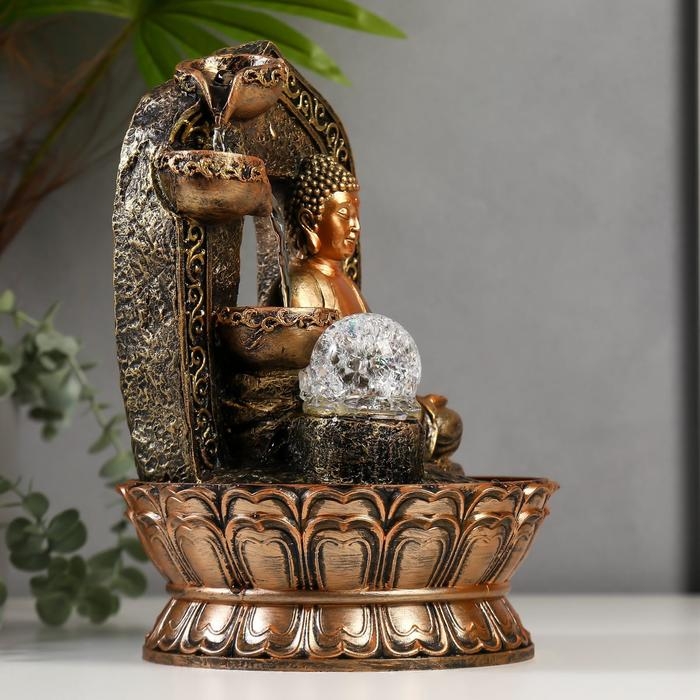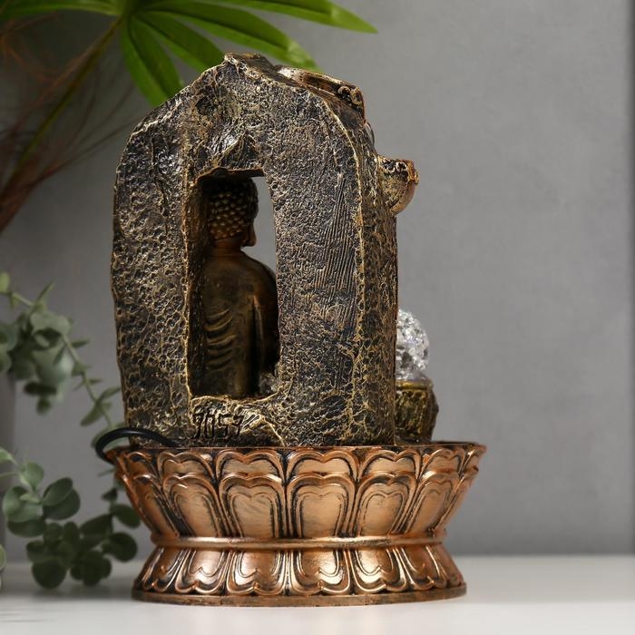 Фонтан настольный от сети, подсветка "Будда в арке с водопадом" 30х21х21 см