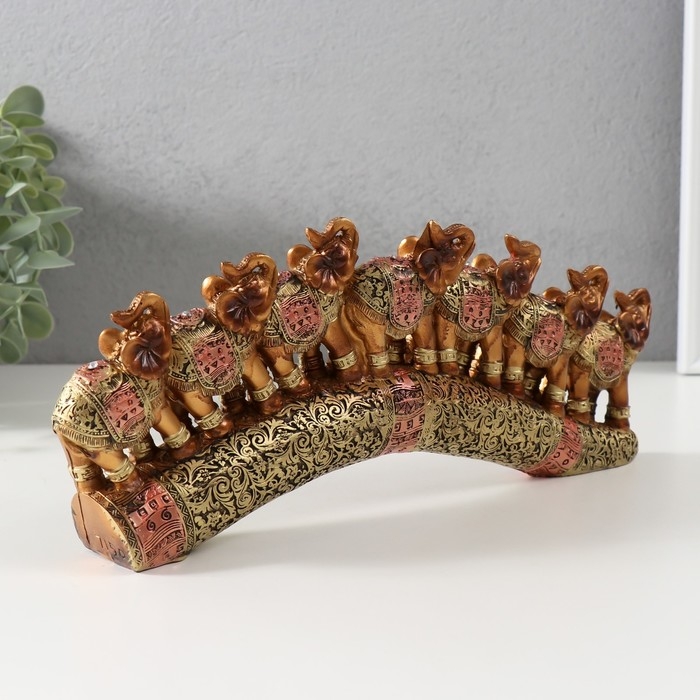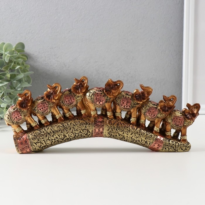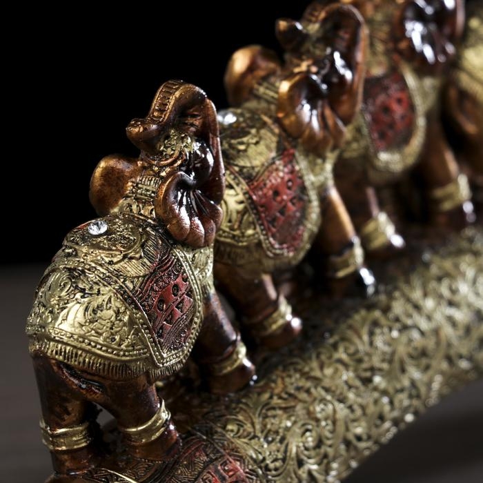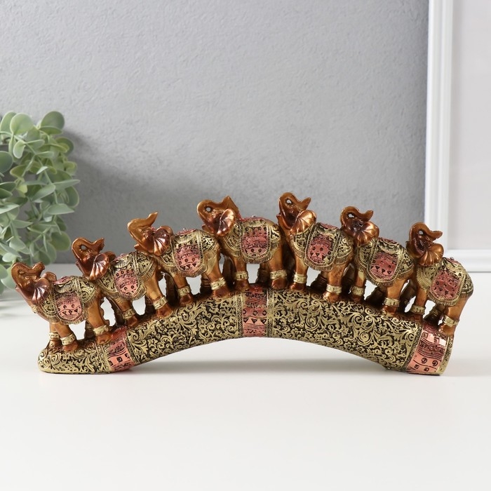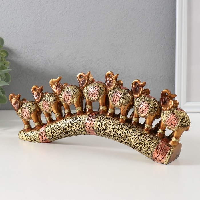Сувенир полистоун "Семь африканских слонов в золотой, ажурной попоне" 10,7х29х4 см