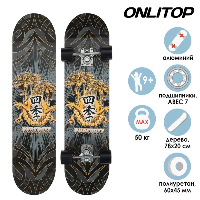 Скейтборд ONLITOP, колёса PU 60х45 мм, алюминиевая рама