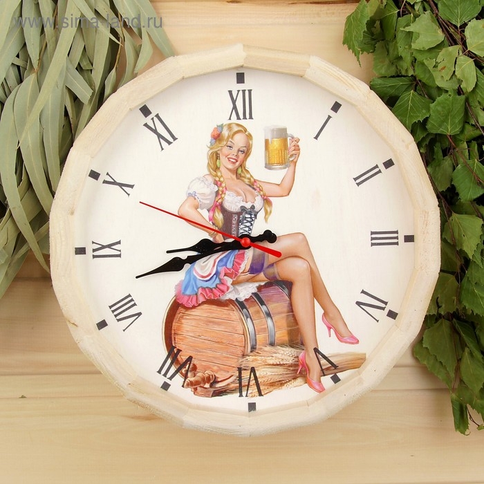 Часы банные бочонок "Добропаровъ. Дама с пивом"