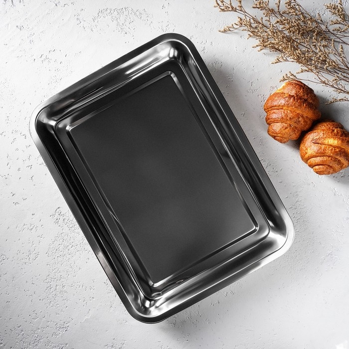 Противень из нержавеющей стали, 3,8 л, 39,5×29×5,5 см, цвет хромированный