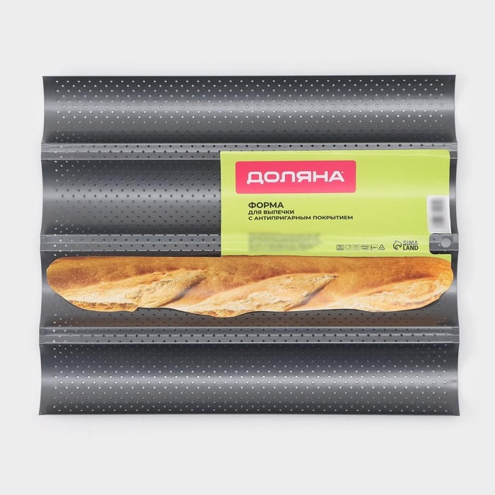 Для выпечки ровных аппетитных багетов можно использовать обычный противень, но для ускорения работы лучше купить специальный - форму для выпечки багетов Доляна. С помощью формы для выпечки багетов очень легко приготовить ровные по форме изделия, равномерно пропеченные и аппетитно поджаренные со всех сторон. Высококачественная листовая сталь равномерно распределяет тепло - для идеального результата. Он снабжен антипригарным покрытием, поэтому ничего не прилипает. Вы можете испечь до четырёх багетов одновременно. Такой удобный и практичный аксессуар станет незаменимым помощником на кухне для каждой современной хозяйки.