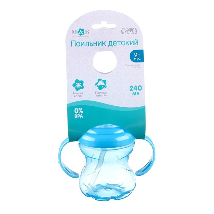 Поильник - непроливайка детский с мягким носиком, 240 мл., с ручками, цвет голубой