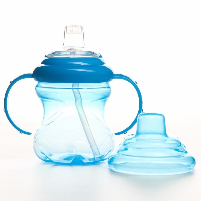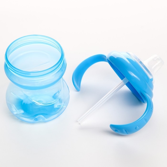 Поильник - непроливайка детский с силиконовой трубочкой, 250 мл., с ручками, цвет голубой