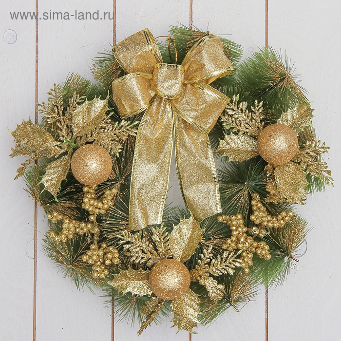 Венок новогодний d-28 см "С бантиком" золотые ягодки