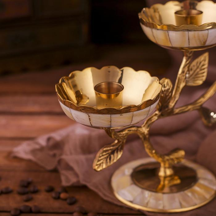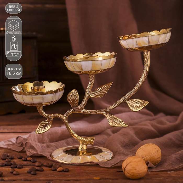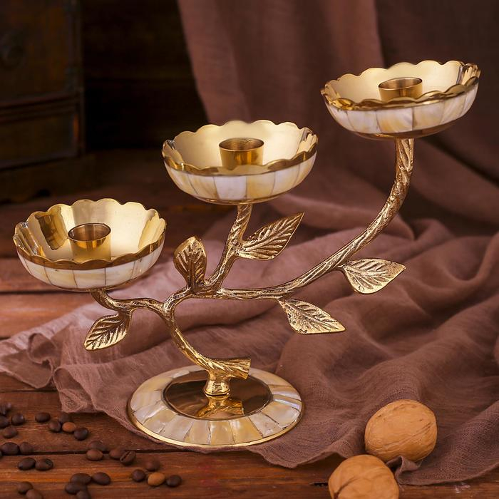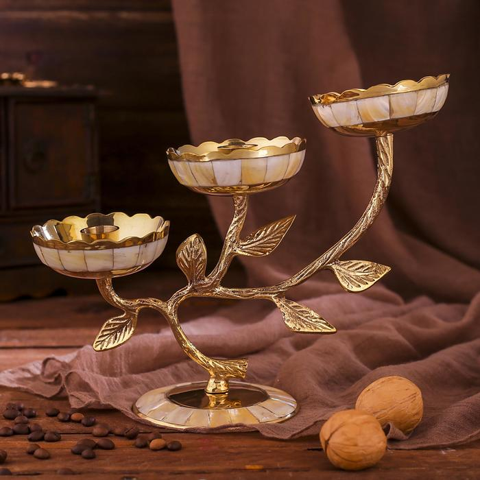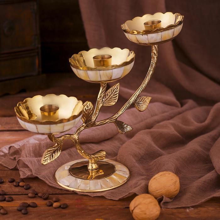 Подсвечник латунь на 3 свечи "Три бутона" с перламутром 25,5х10х18,5 см