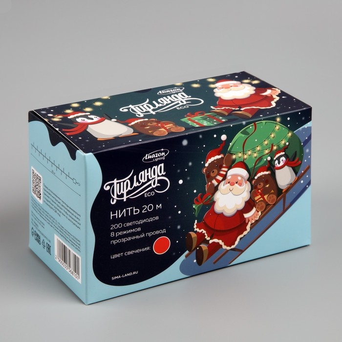 Гирлянда «Нить» 20 м, IP20, прозрачная нить, 200 LED, свечение красное, 8 режимов, 220 В