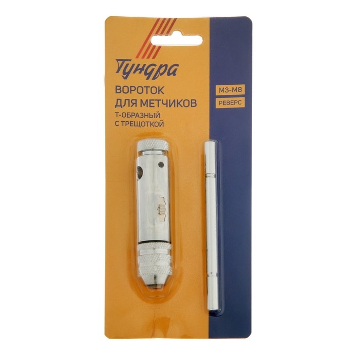 Метчикодержатель с трещоткой ТУНДРА, Т-образный, хромированный, М3 - М8