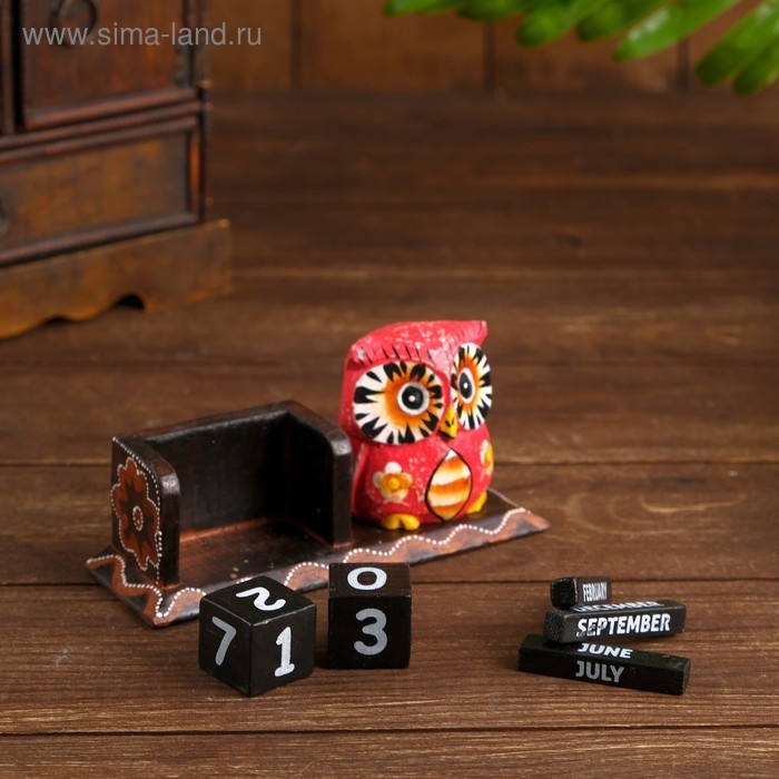 Календарь настольный дерево "Розовая сова" 15х6х7 см