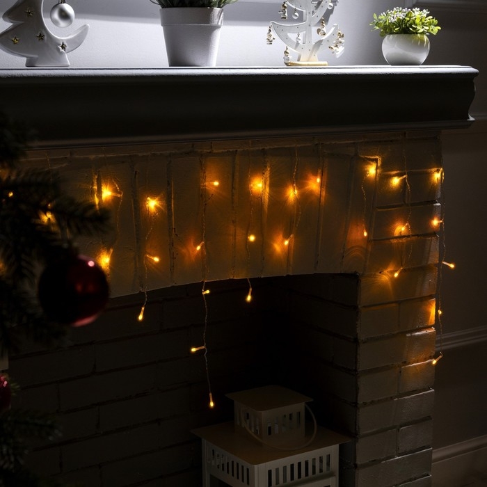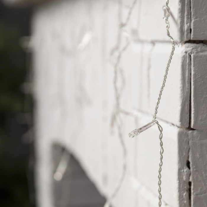 Гирлянда «Занавес» 2.5 × 0.65 м с насадками «Капли», IP20, прозрачная нить, 50 LED, свечение тёплое белое, 8 режимов, 220 В
