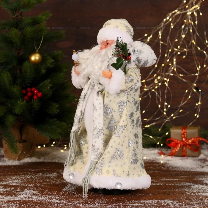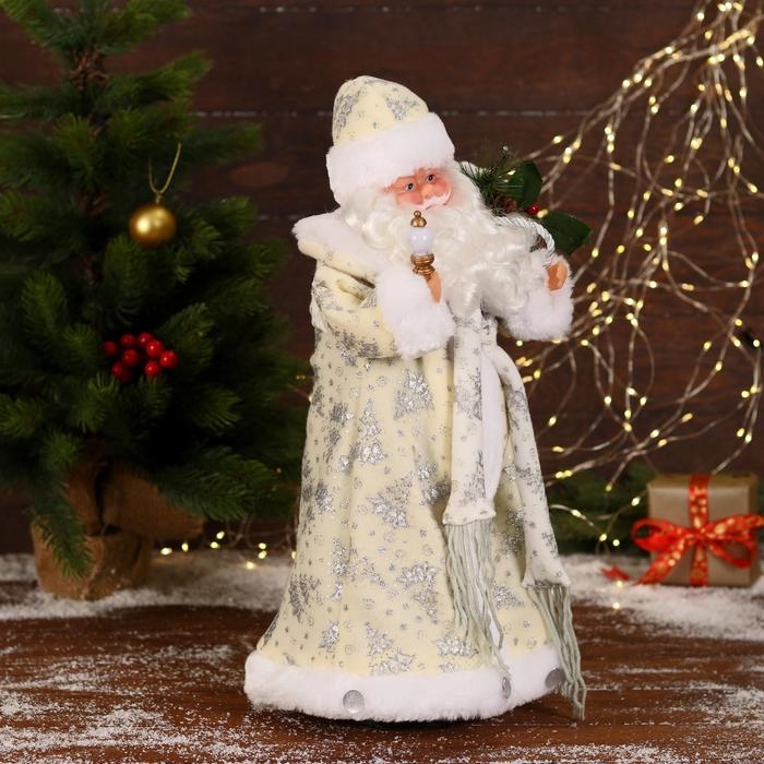 Дед Мороз "В белой шубке с подарками" двигается, с подсветкой, 43 см