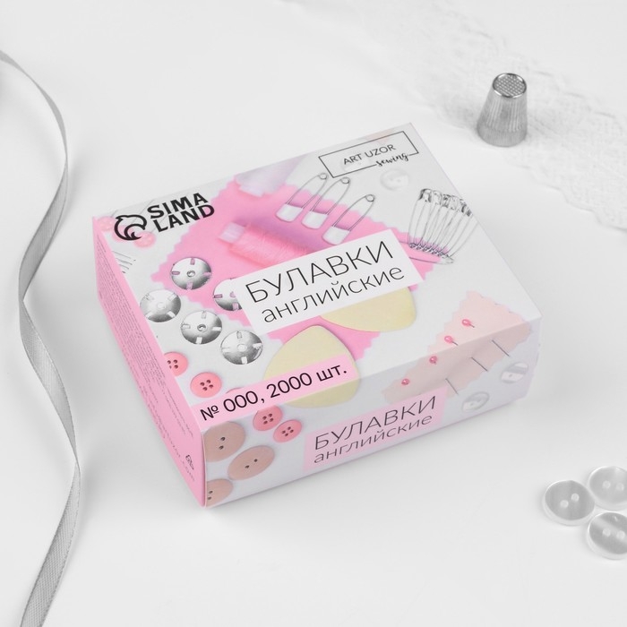 Булавки английские, 19 мм, 2000 шт, цвет серебряный