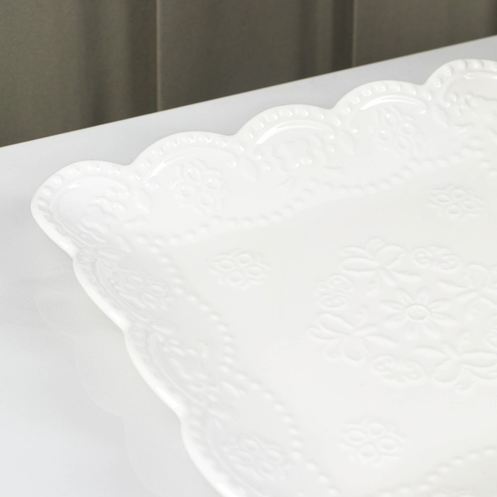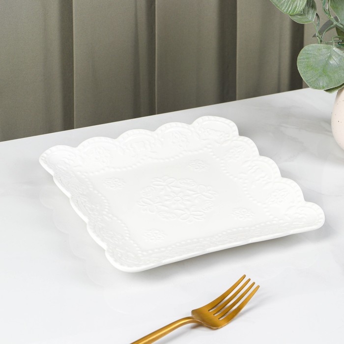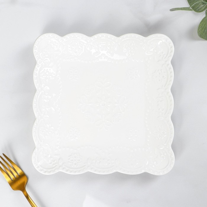 Тарелка фарфоровая квадратная Доляна «Сьюзен», 20×20 см, цвет белый