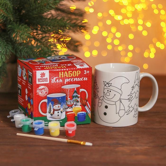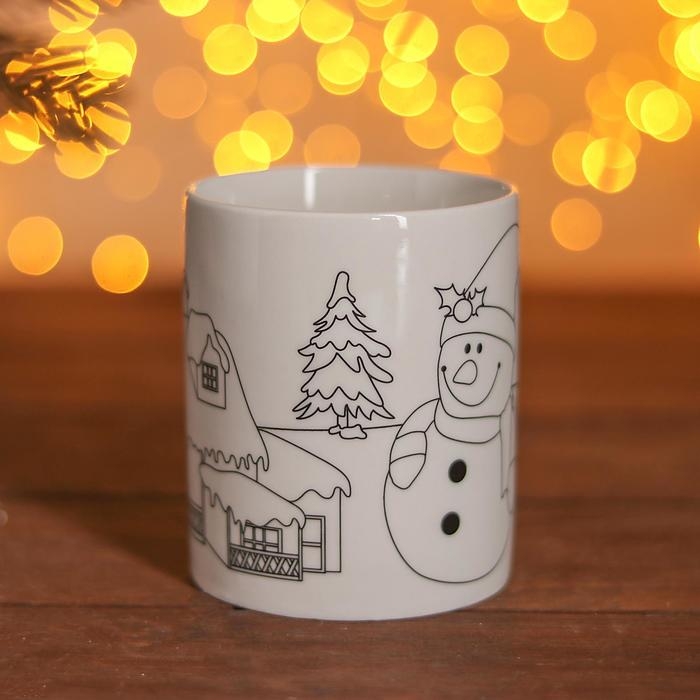 Набор кружка под раскраску «Снеговичок» 250 мл, краска 6 цв по 2 мл, кисть