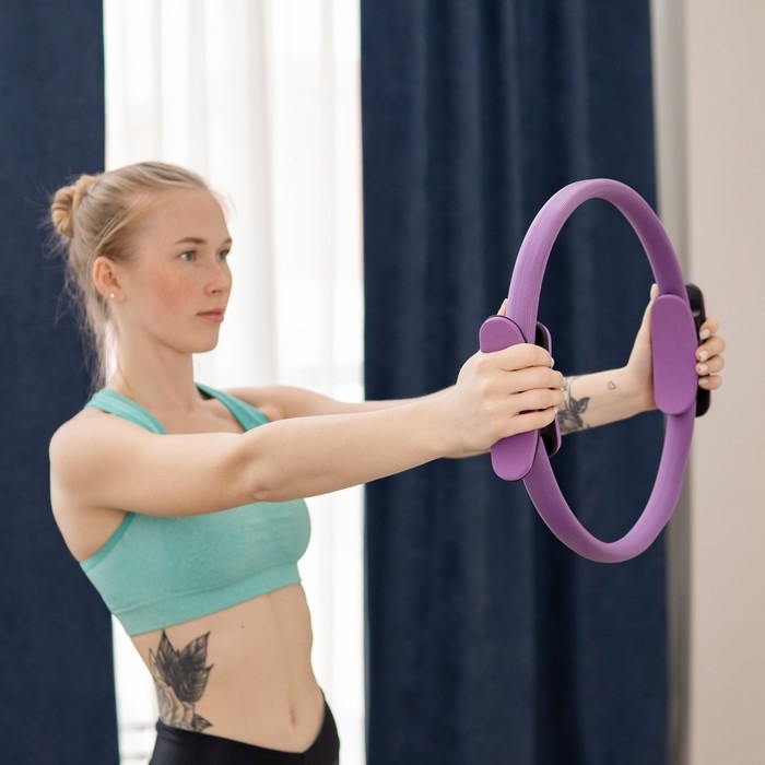 Кольцо для пилатеса - это тренажёр в виде кольца с ручками, который создаёт дополнительное сопротивление при выполнении упражнений. Кольцо используется в пилатесе и в других низкоударных тренировках для тонуса мышц верхней и нижней части тела.