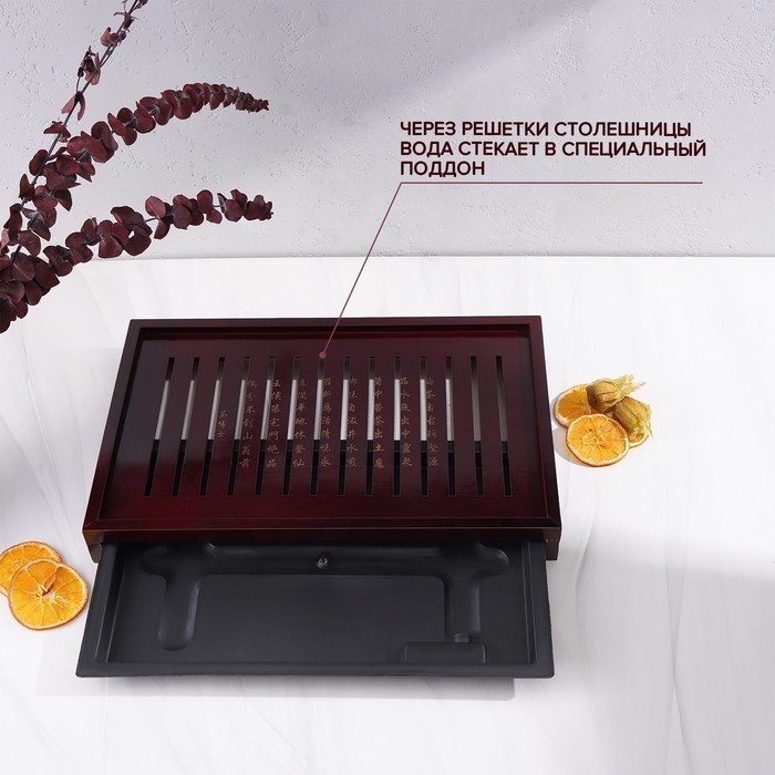 Стол для чайной церемонии с подносом «Иероглифы», 43×27,5×5 см