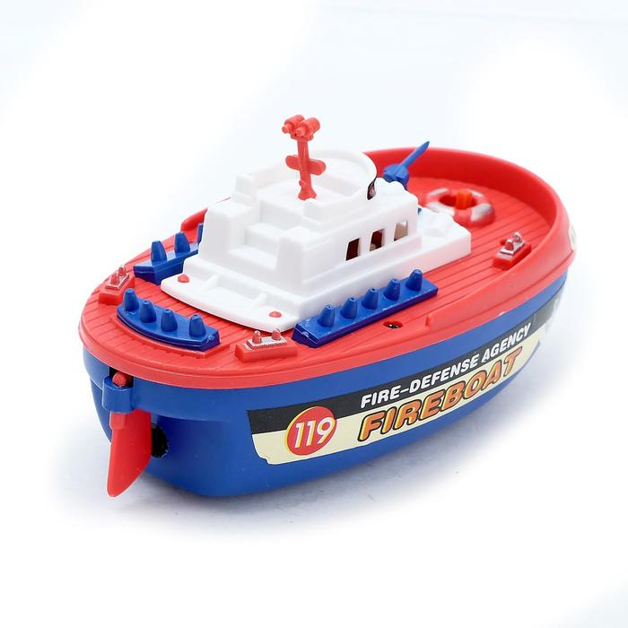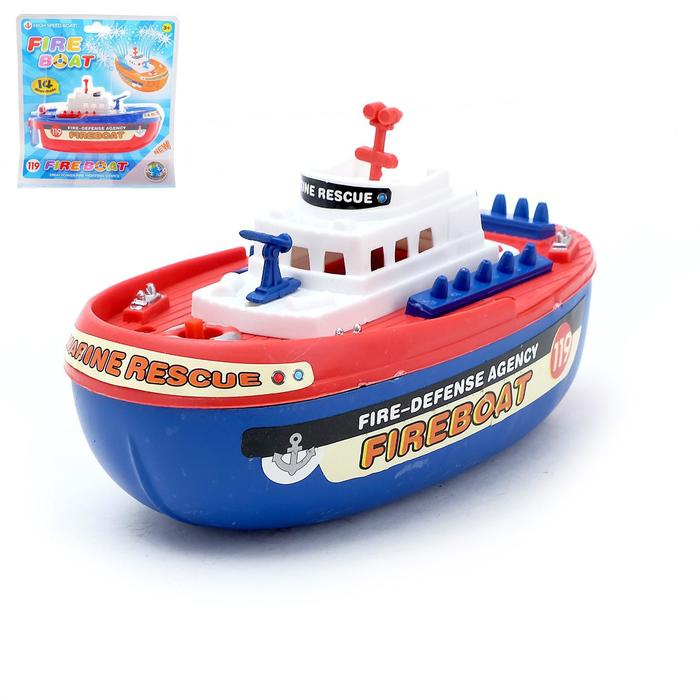 Детский корабль «Пожарная лодка», работает от батареек, брызгает водой