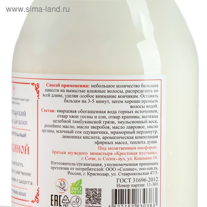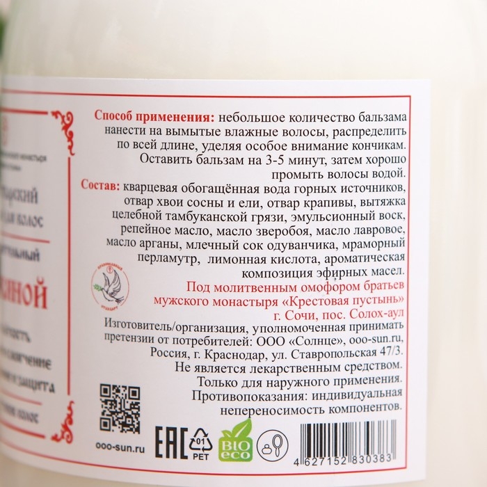 Бальзам Монастырский для волос «Травяной», 500 мл.
