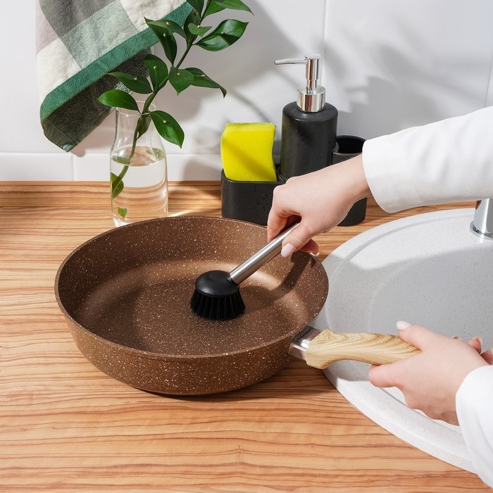 Дозатор для моющего средства с подставкой для губки и щётки «Минимал», 350 мл, цвет тёмно-коричневый