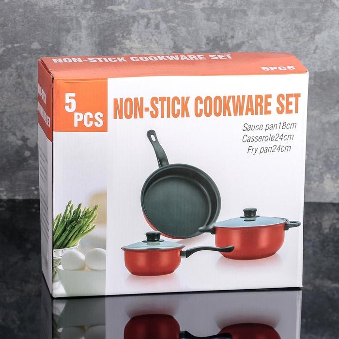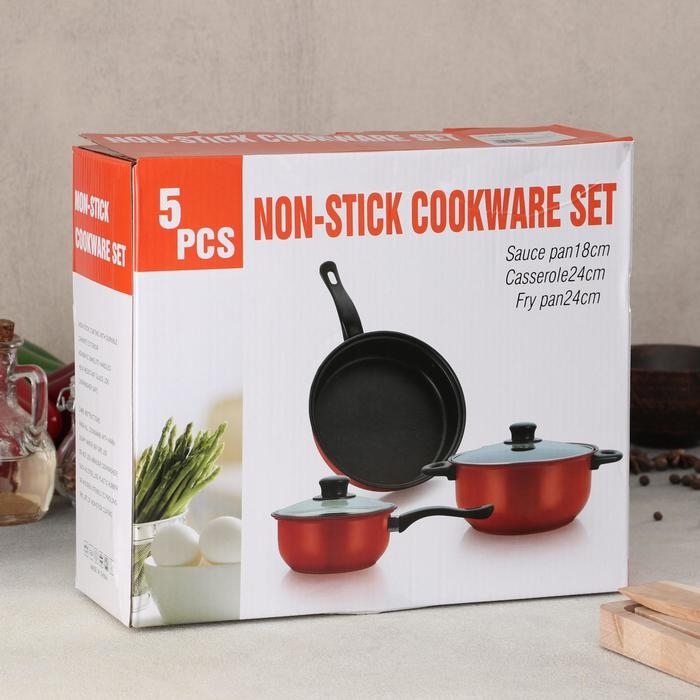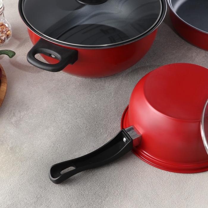 Набор посуды Promo Stone violet: кастрюля 3 л, d=24 см, ковш 1,3 л, сковорода d=24 см, крышки 2 шт, антипригарное покрытие, цвет бордовый
