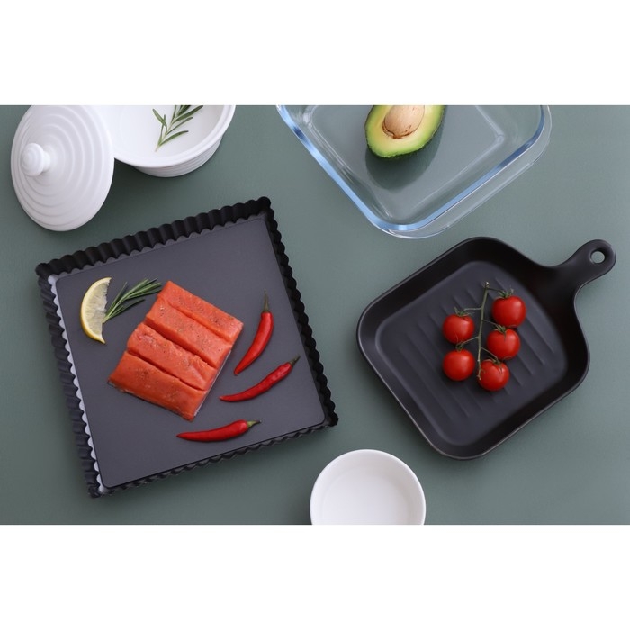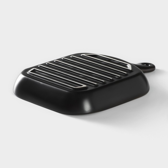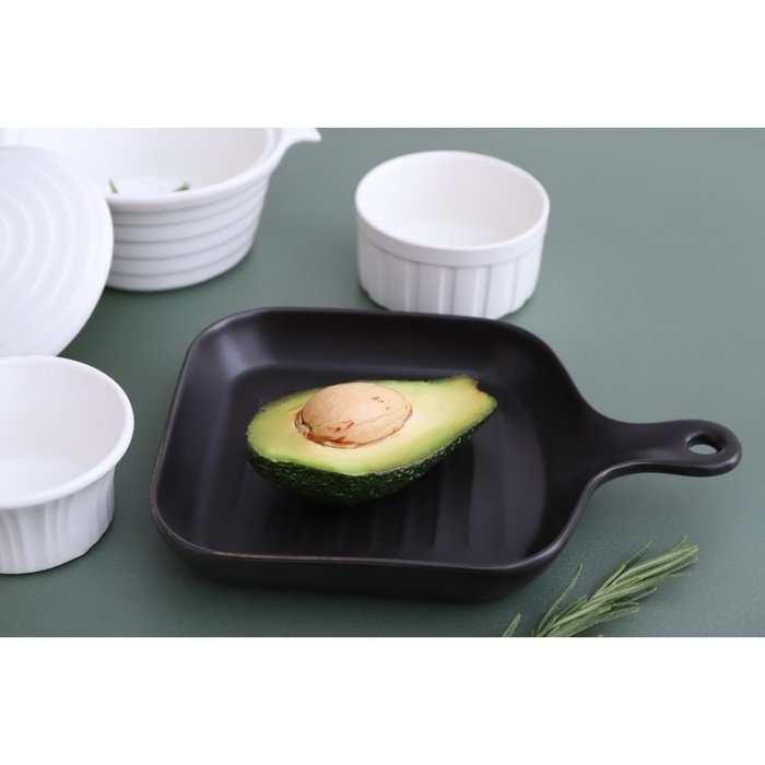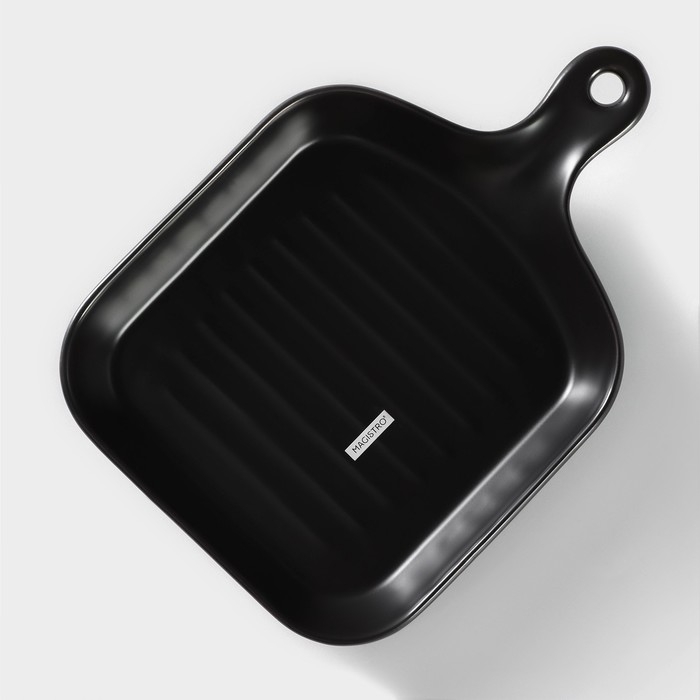 Блюдо из жаропрочной керамики для подачи Magistro «Сковорода-гриль», 23×16×3 см, цвет чёрный