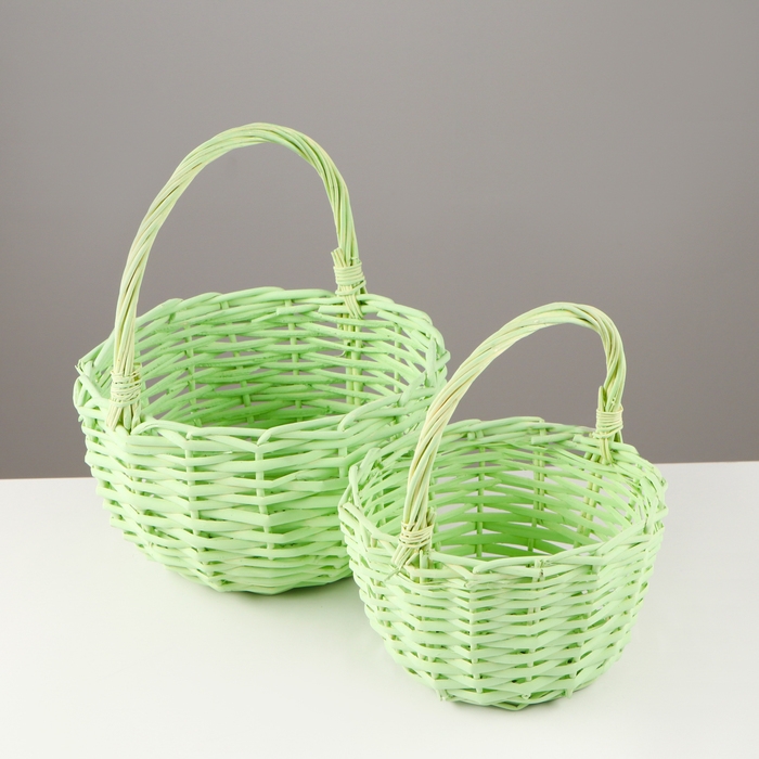 Набор корзин плетёных, бамбук, 3 шт., зеленые, большие