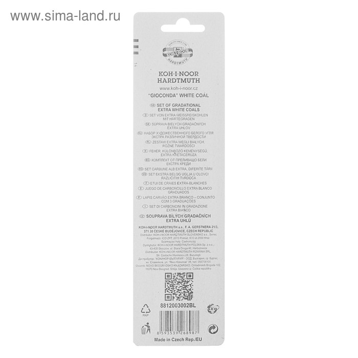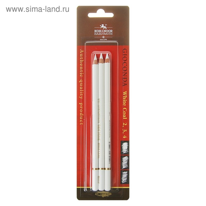 Уголь белый в карандаше Koh-I-Noor GIOCONDA 8812, набор разных твёрдостей № 2, 3, 4