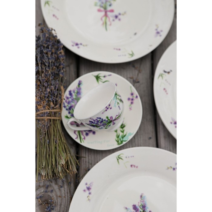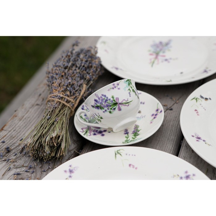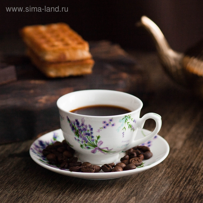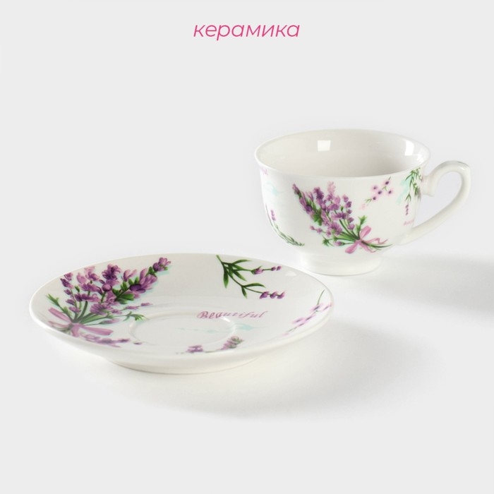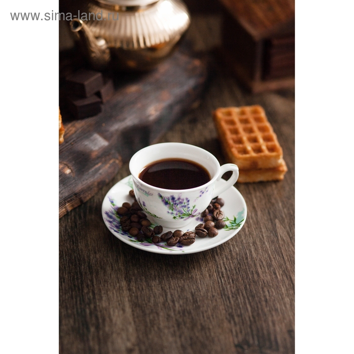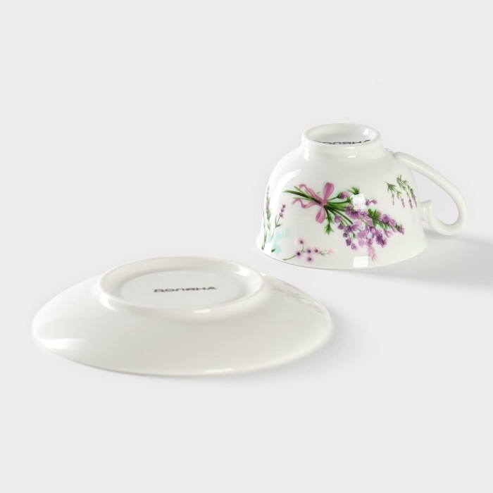 Кофейная пара фарфоровая Доляна «Лаванда», 2 предмета: чашка 80 мл, блюдце d=11,4 см, цвет белый