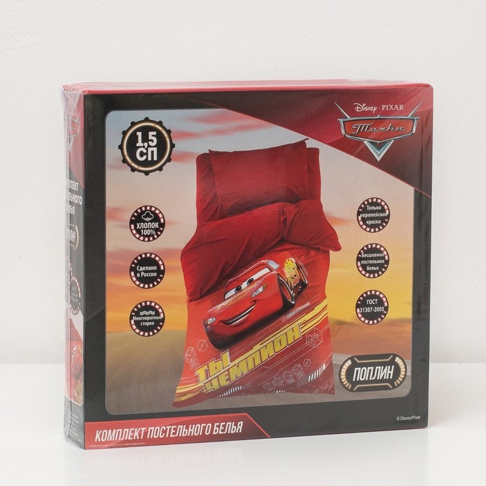 Постельное бельё 1.5 сп "Тачки" 143х215 см, 150х214 см, 50х70 1 шт, поплин 125 г/м2