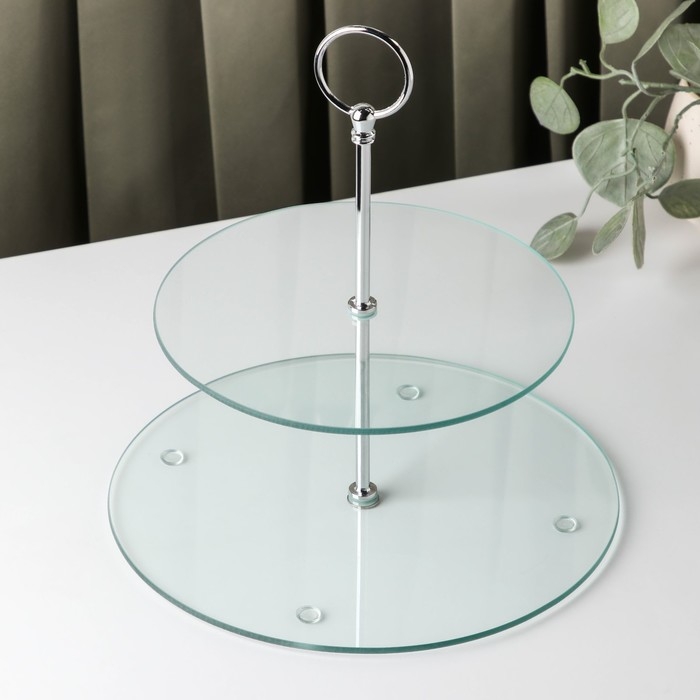Фруктовница стеклянная 2-х ярусная круглая Доляна, d=25/20 см, прозрачный