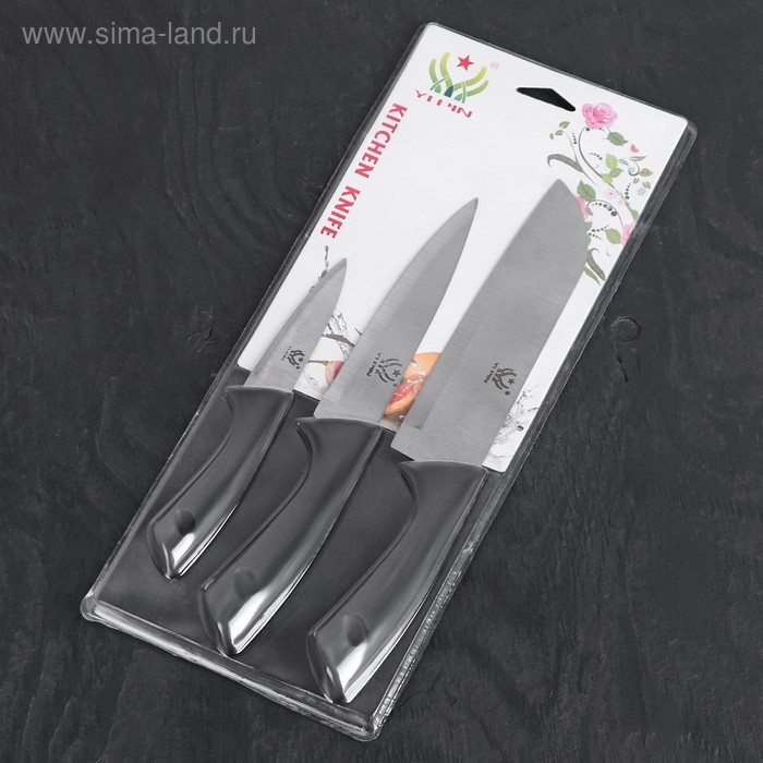 Набор кухонных ножей «Энеолит», 3 предмета: лезвие 8,5 см, 15 см, 17 см, цвет чёрный