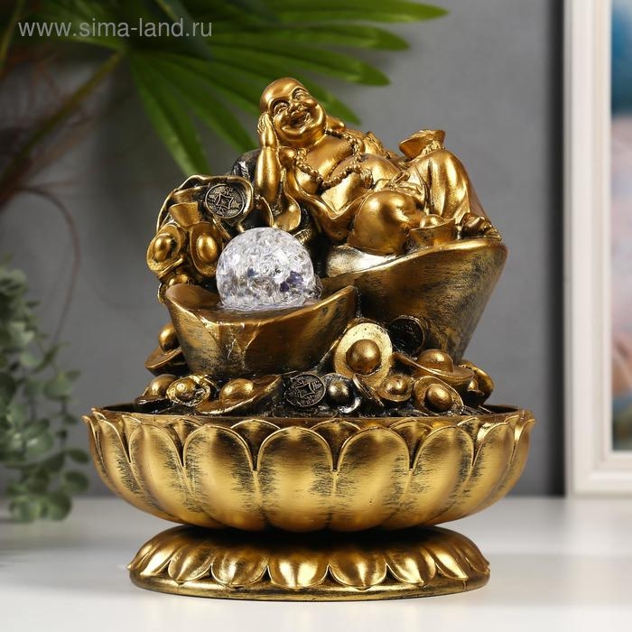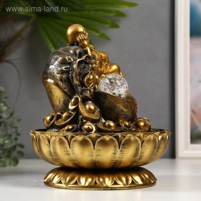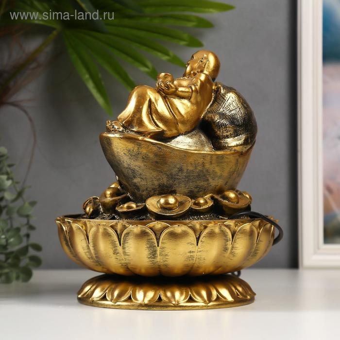 Фонтан настольный от сети, подсветка "Золотой хотей и слитки золота" 31х24х24 см