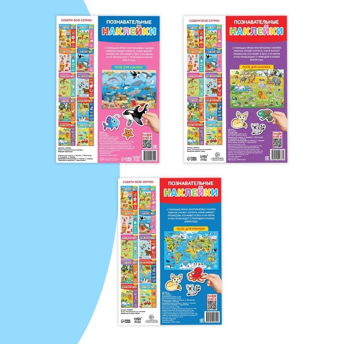 Наклейки многоразовые набор «Познавательные» №2, 3 шт., формат А4