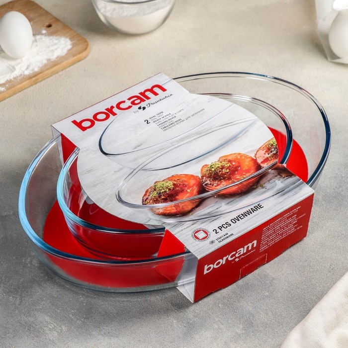 Набор форм из жаропрочного стекла для запекания Borcam, 2 предмета: 3 л, 1,5 л