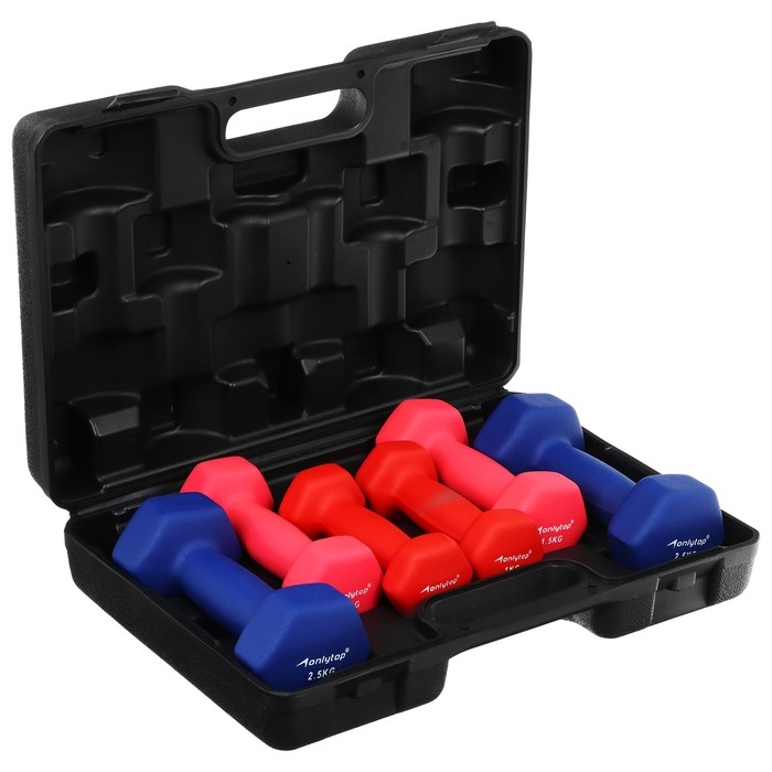 Набор гантелей неопреновых ONLYTOP 10 кг: 1 кг х 2 шт., 1,5 кг х 2 шт., 2,5 кг х 2 шт.