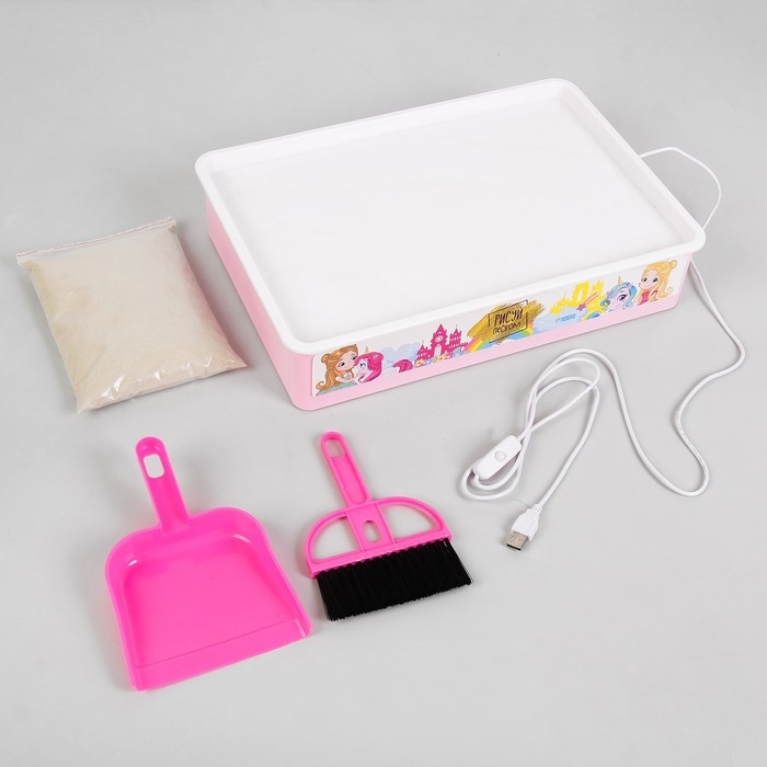 Планшет для рисования песком с цветной подсветкой, 40 × 60 см + гребень и трафарет