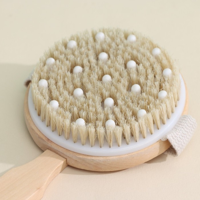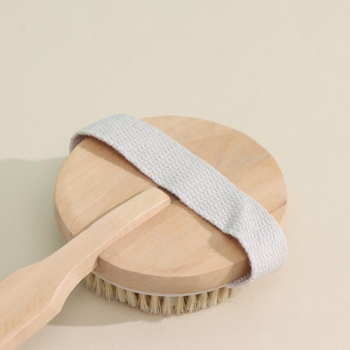 Щётка массажная для тела Доляна, с ремешком, натуральная щетина