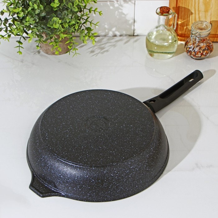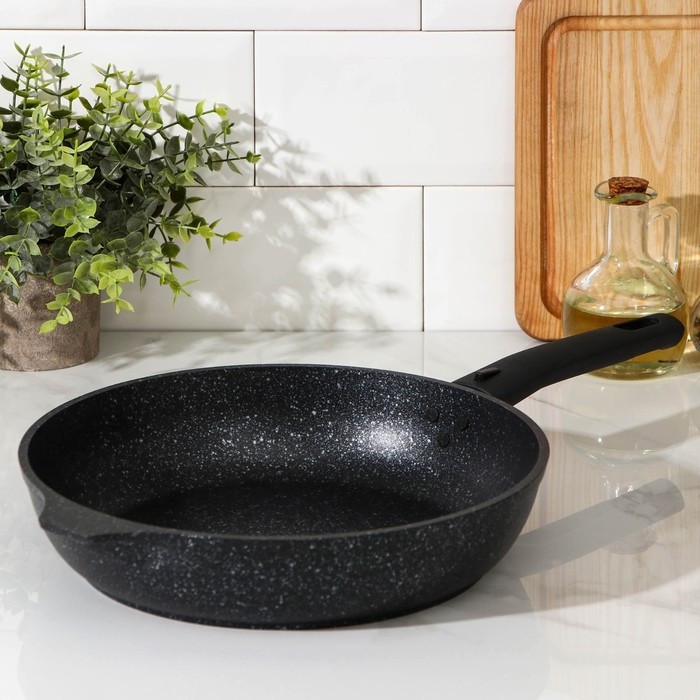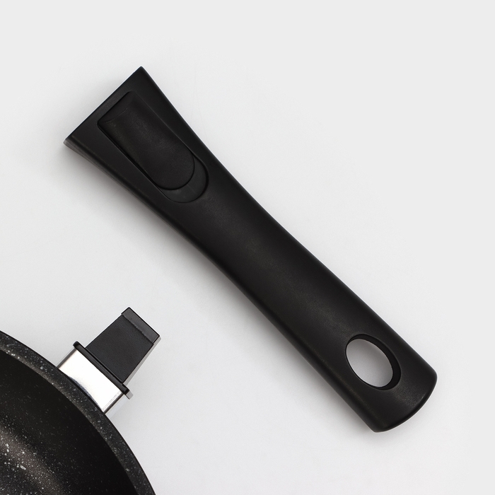 Сковорода, d=26 см, съёмная ручка, антипригарное покрытие, цвет тёмный мрамор