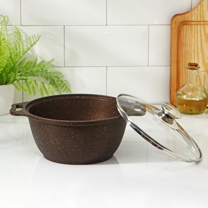 Кастрюля, 2 л, d=22 см, h=15 см, антипригарное покрытие, цвет кофейный мрамор