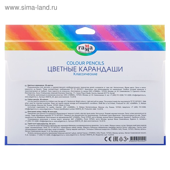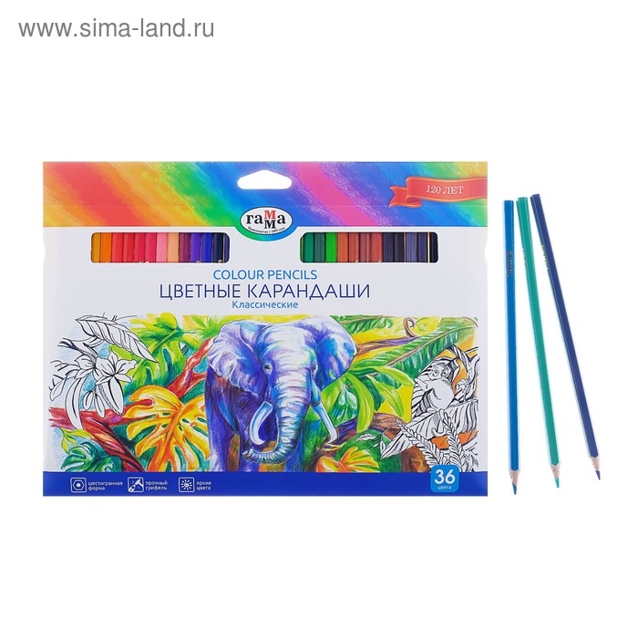 Карандаши 36 цветов Гамма "Классические", шестигранные, d=2.6 мм, картонная упаковка, европодвес 050918_05