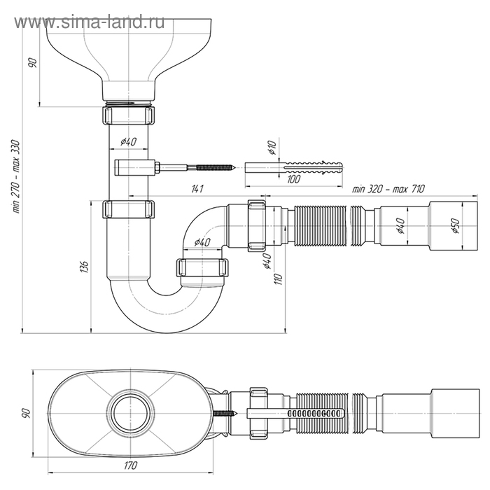 Сифон прост в установке и выполняет свою главную функцию - формирование гидрозатвора для отсечения неприятных запахов из канализации.