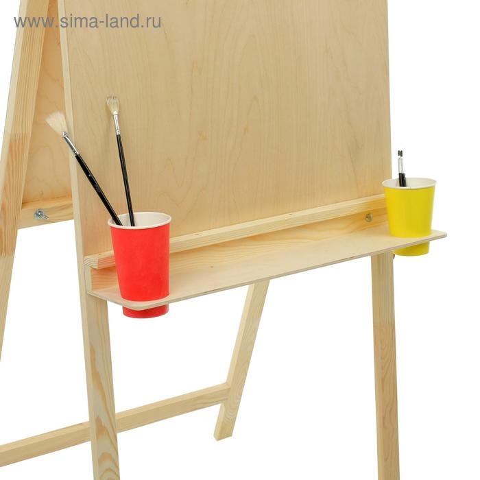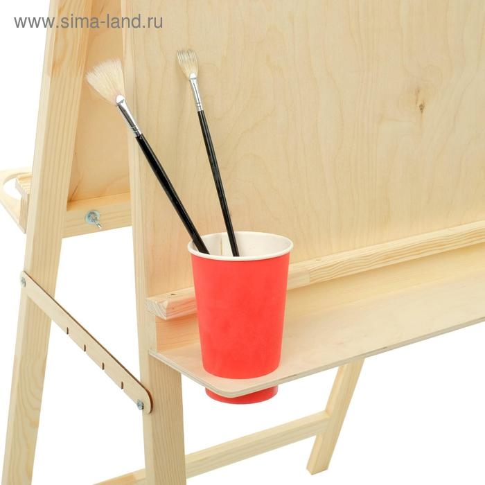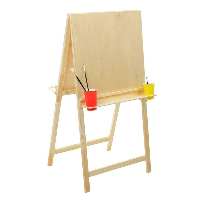 Напольный мольберт двухсторонний ""Хлопушка""- оптимальное соотношение функциональности и цены для начинающих художников и первого знакомства со знаковой живописью. Мольберт имеет простую конструкцию: пять положениий угла наклона рабочей поверхности и расширенные полки для художественных материалов с двумя отверстиями для стаканов. Бумагу на планшете можно закрепить кнопками или малярным скотчем, так же при необходимости планшет мжно снять. Мольберт подходит для занятий в студии и дома, он складывается и не занимает много места при хранении. Изготовлен в России из неокрашенной доски и фанеры высшего сорта сибирской сосны. При таком тщательном отборе материалов вы можете быть уверены, что конструкция не деформируется со временем и не рассохнется. Все поверхности зашлифованы для безопасности и комфорта работы художника.