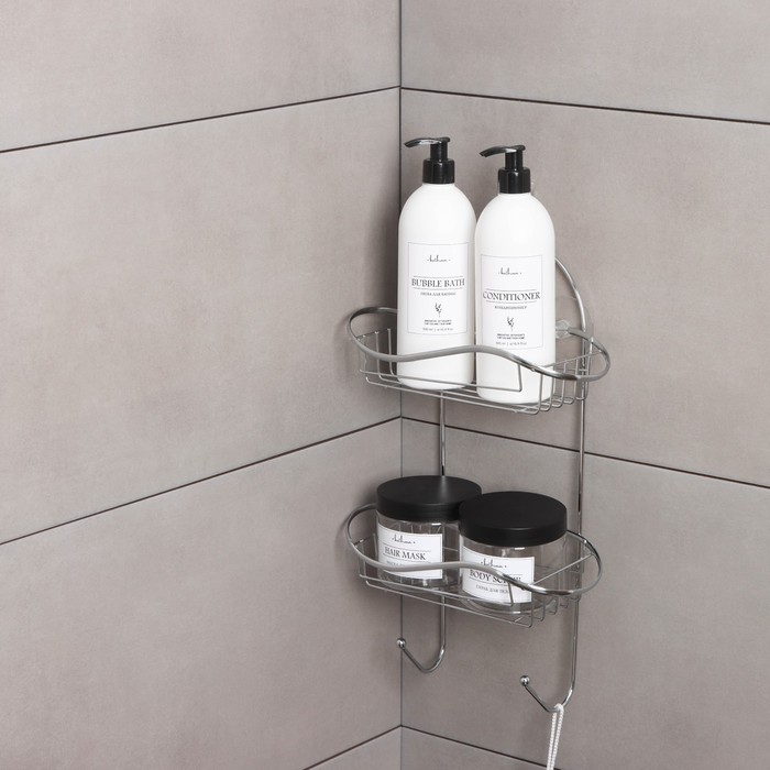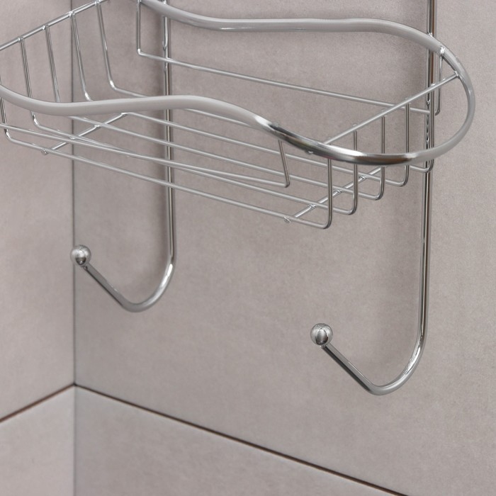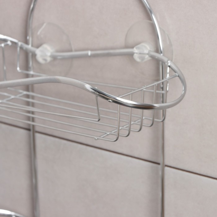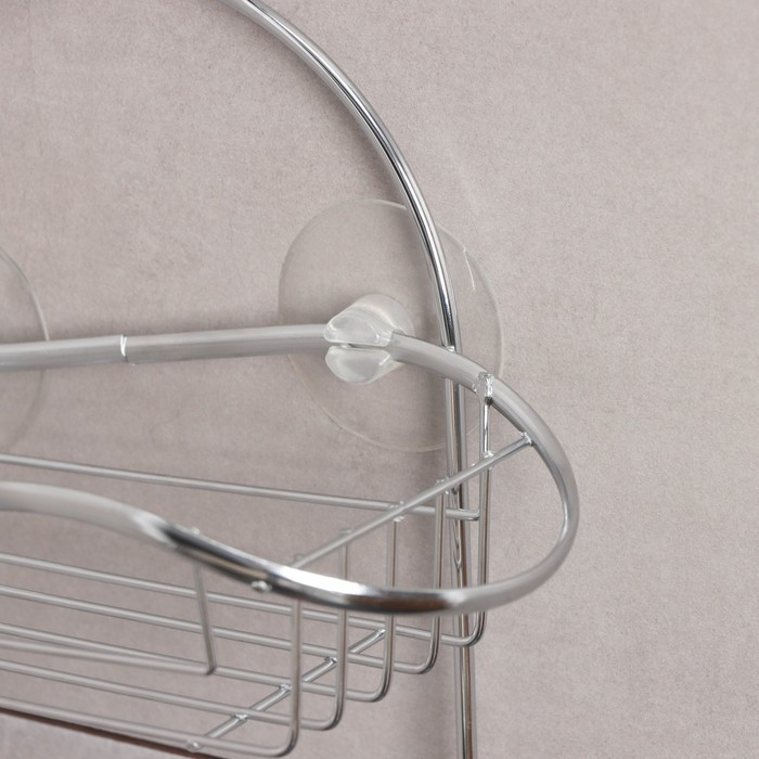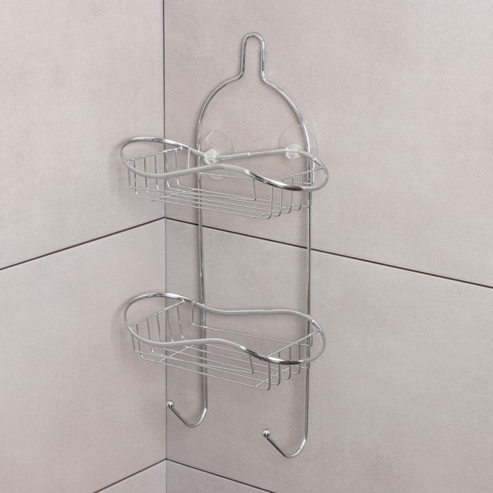 Полка 2-х ярусная на присоске Доляна «Волна», 25×11×45 см, 2 крючка, цвет хромированный
