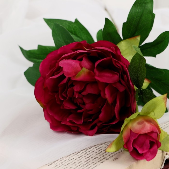 Цветы искусственные "Пион дуо" 12х60 см, бордовый