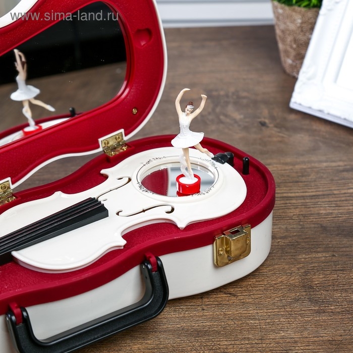 Шкатулка музыкальная пластик механическая "Скрипка" белая 6х34,5х12,7 см