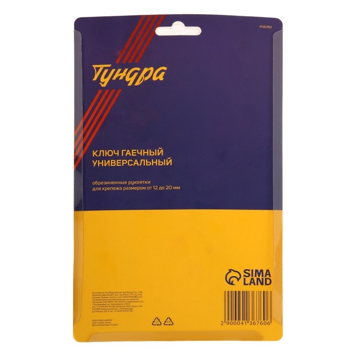 Ключ гаечный универсальный ТУНДРА "Bionic", обрезиненные рукоятки, 12 - 20 мм