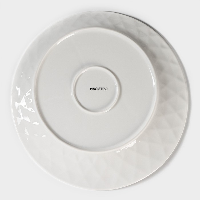 Тарелка фарфоровая обеденная Magistro «Блик», d=26 см, цвет белый